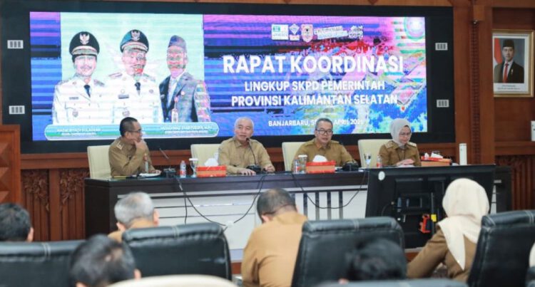 BANJARBARU, REDAKSI LINTAS – Gubernur Kalimantan Selatan, H. Muhidin didampingi Sekretaris Daerah Provinsi Muhammad Syarifuddin memimpin Rapat Koordinasi Lingkup SKPD Pemerintah Provinsi Kalimantan Selatan, di Ruang Rapat Abrani Sulaiman, Senin (6/4/2026).