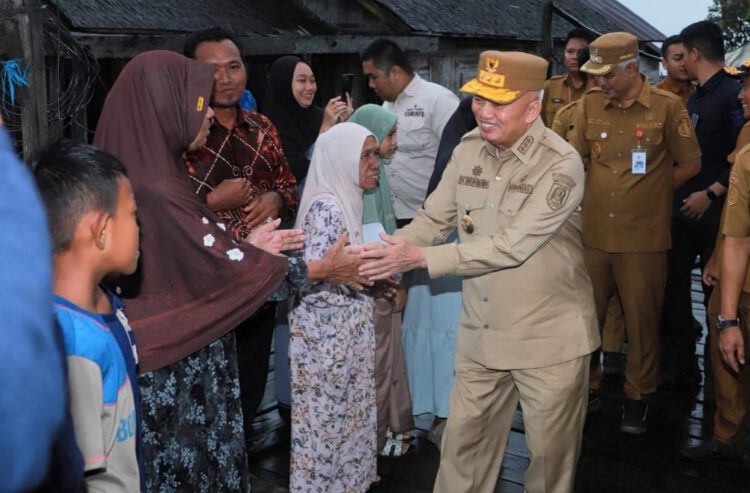 Di hadapan warga desa yang sudah berkumpul di halaman sekolah dasar Gubernur H. Muhidin mengaku senang bisa mengunjungi langsung warga di sana.