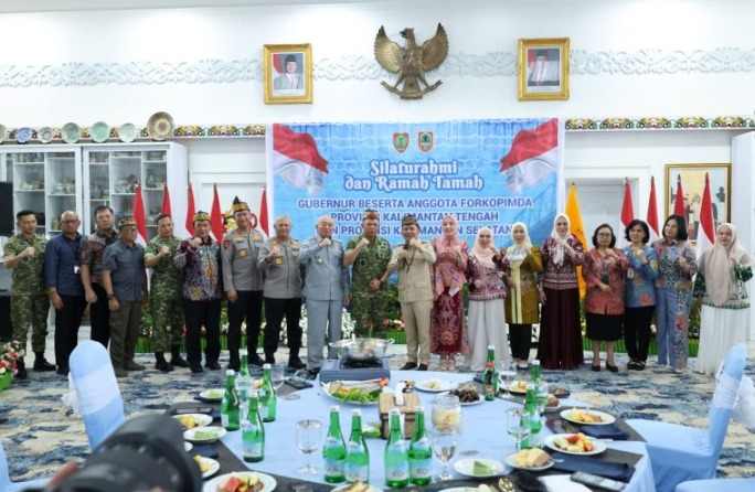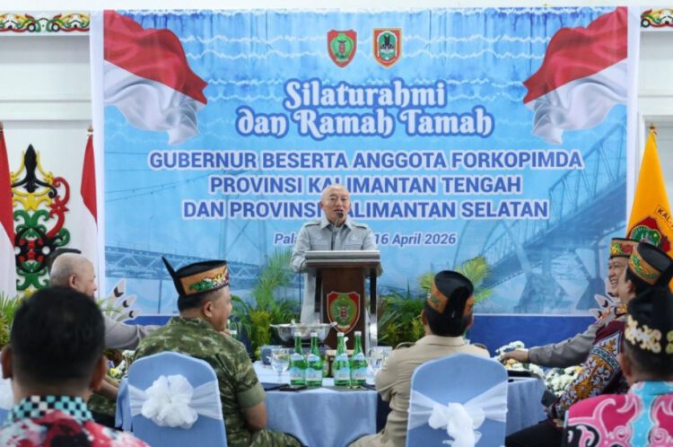 PALANGKARAYA, REDAKSI LINTAS – Gubernur Kalimantan Selatan H. Muhidin didampingi istri Hj Fathul Jannah beserta Forkopimda, bersilaturahmi dan beramah-tamah dengan Gubernur Kalimantan Tengah H Agustiar Sabran bersama istri, Aisyah Thisia Agustiar Sabran, Kamis (16/04/2026) di Rumah Dinas Gubernur Kalteng, Palangka raya.