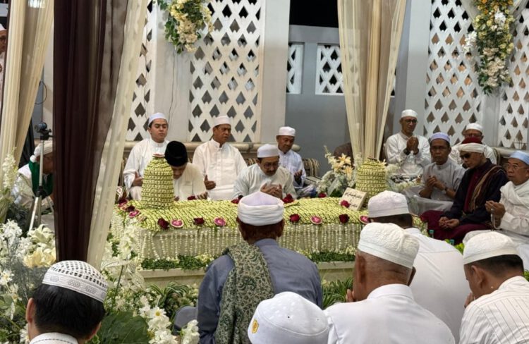 Rangkaian acara yang berlangsung khidmat dan penuh keberkajan itu diisi dengan doa bersama yang dipimpin oleh Habib Ali bin Abdullah Alaydrus, kemudian dilanjutkan dengan lantunan puji-pujian kepada Nabi Muhammad SAW, serta pembacaan zikir dan tahlil yang diikuti dengan penuh kekhusyukan oleh para jamaah.