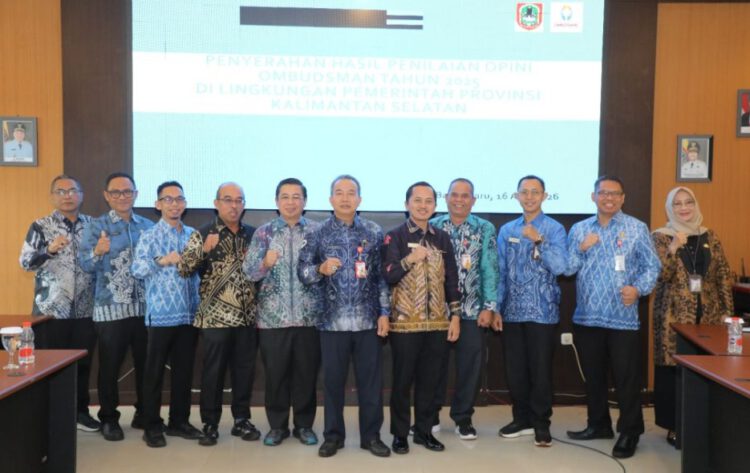 BANJARBARU, REDAKSI LINTAS – Gubernur Kalimnatan Selatan H. Muhidin melalui Sekretaris Daerah Provinsi Kalimantan Selatan, Muhammad Syarifuddin, menerima Hasil Penilaian Opini Ombudsman RI Tahun 2025 yang diserahkan langsung oleh Ketua Perwakilan Ombudsman RI Provinsi Kalimantan Selatan, Hadi Rahman, bertempat di Aula Dinas Koperasi, Usaha Kecil dan Menengah Provinsi Kalsel di Banjarbaru, Kamis (16/4/2026).