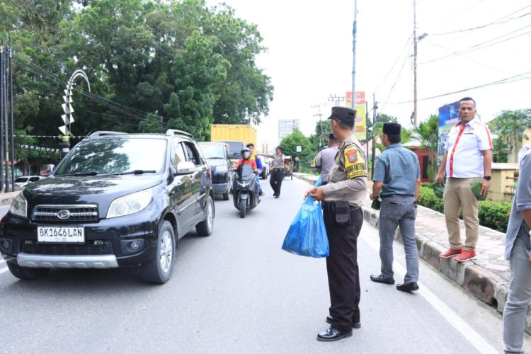 REDAKSI LINTAS, LABUHANBATU – Polres Labuhanbatu kembali menggelar kegiatan sosial “Jumat Berkah” dengan membagikan 100 nasi bungkus kepada para pengemudi becak bermotor (betor) dan sopir angkot yang melintas di Jalan MH. Thamrin, tepat di depan Mapolres Labuhanbatu, Jumat (28/11/2025) siang.
