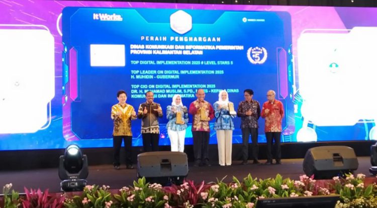Melalui penilaian ketat para pakar TI nasional, Kalsel dinobatkan sebagai Pemenang TOP DIGITAL Implementation 2025 #Stars 5, sementara Gubernur H. Muhidin meraih TOP Leader on Digital Implementation 2025, dan Kepala Dinas Kominfo, Muhamad Muslim, dianugerahi TOP CIO on Digital Implementation 2025.
