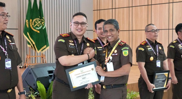 Penghargaan diserahkan langsung oleh Kepala Kejaksaan Tinggi Kalimantan Selatan, Tiyas Widiarto, S.H., M.H. kepada Kepala Kejaksaan Negeri Barito Kuala, Dr. Andrianto Budi Santoso, S.H., M.H. pada acara kegiatan Rapat Kerja Daerah (Rakerda) 2025 yang diikuti oleh Pejabat di Kejaksaan Tinggi Kalimantan Selatan dan seluruh Kepala Kejaksaan Negeri se-Kalimantan Selatan.