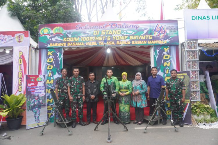 Selain menghadiri perayaan puncak Hari Jadi, Kodim 1002/HST bersama Yonif 621/Mtg turut berpartisipasi dengan mengikuti stan pameran pembangunan yang dibuka secara resmi oleh Gubernur Kalimantan Selatan H. Muhidin, didampingi Bupati Hulu Sungai Tengah Samsul Rizal beserta Ketua TP PKK Kabupaten Hulu Sungai Tengah Ny. Deni Era Samsul Rizal.