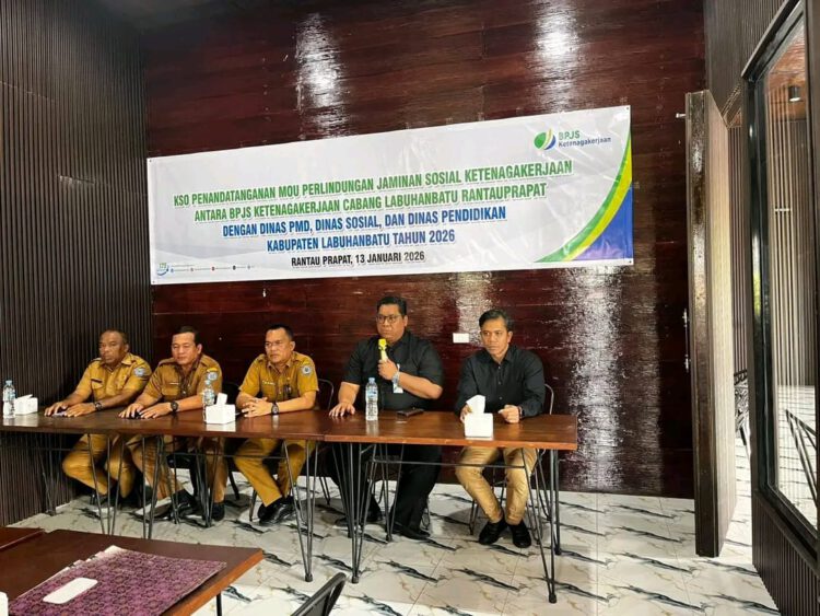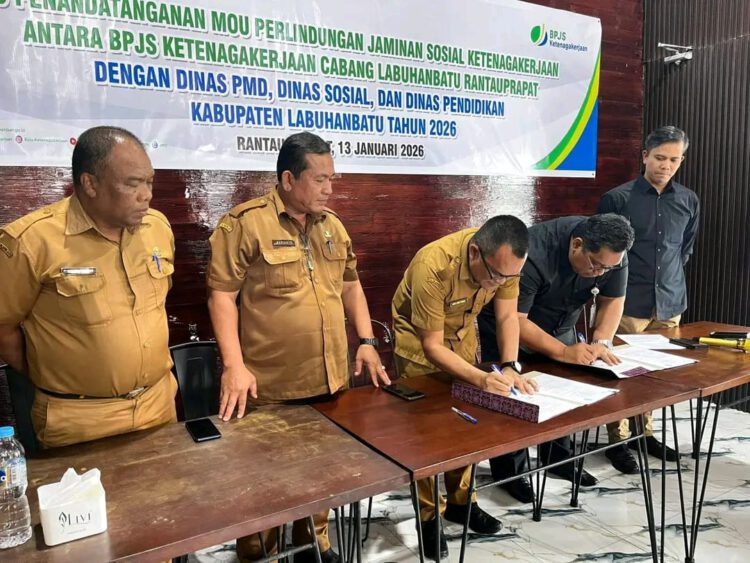 REDAKSI LINTAS, LABUHANBATU – Menindaklanjuti Nota Kesepahaman (Memorandum of Understanding/MoU) antara Bupati Labuhanbatu dengan Kepala BPJS Ketenagakerjaan Kabupaten Labuhanbatu, Dinas Pendidikan Kabupaten Labuhanbatu melaksanakan penandatanganan MoU dengan Kepala Cabang BPJS Ketenagakerjaan (BPJS Naker) Kabupaten Labuhanbatu. Selasa (13/01/2026)
