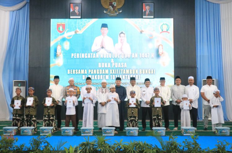 BANJARMASIN, REDAKSI LINTAS – Komando Resor Militer (Korem) 101/Antasari menggelar peringatan Nuzulul Qur’an 1447 Hijriah yang dirangkai dengan Buka Puasa Bersama Pangdam XXII/TB di Aula Korem 101/Ant, Jl. Jend. Sudirman Banjarmasin, Sabtu (14/3/2026) sore.