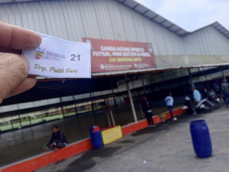 “Sebagian warga sudah antre sejak pagi dan memegang kupon bertuliskan Germas drg. Putih Sari, salah satunya dengan nomor 21. Namun saat pembagian buah tangan sekitar pukul 11.59 WIB, ternyata ada beberapa warga yang tidak kebagian,” ujarnya.