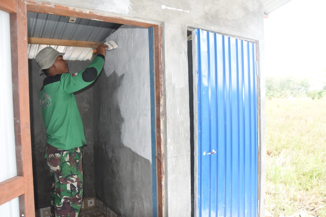 Pada hari Jumat, 30 Mei 2025, terpantau anggota Satgas TMMD sedang melaksanakan pengecatan bagian WC