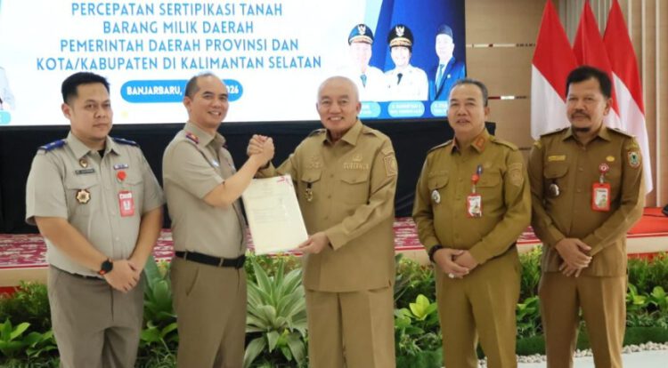 BANJARBARU, REDAKSI LINTAS – Gubernur Kalsel H Muhidin menerima Sertipikat Tanah Barang Milik Daerah Pemerintah Provinsi dari Kantor Wilayah Agraria dan Tata Ruang/Badan Pertanahan Nasional (ATR/BPN) Kalsel sebanyak 69 bidang pada tanah seluas 39,63 hektare yang tersebar di sejumlah kabupaten/kota.